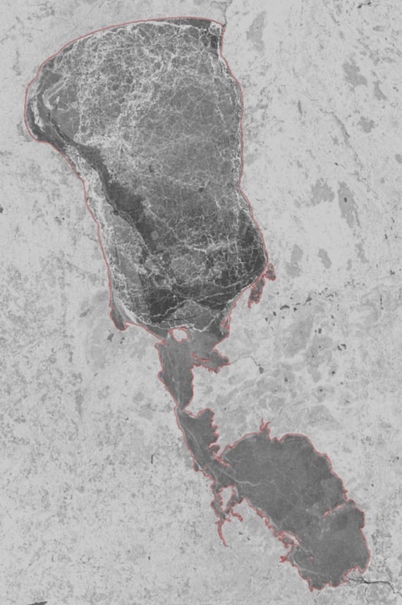 Сегодняшняя….много торосов в северной части озера. А от западного берега лёд отодвинуло и похоже нехило