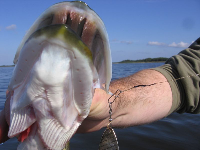 Из казусов - после очередного заброса оставил воблер плавать перед лодко и полез за сигаретами... Вдруг неожиданый удар и щупак вешается на крючок без особого моего вмешательства....
