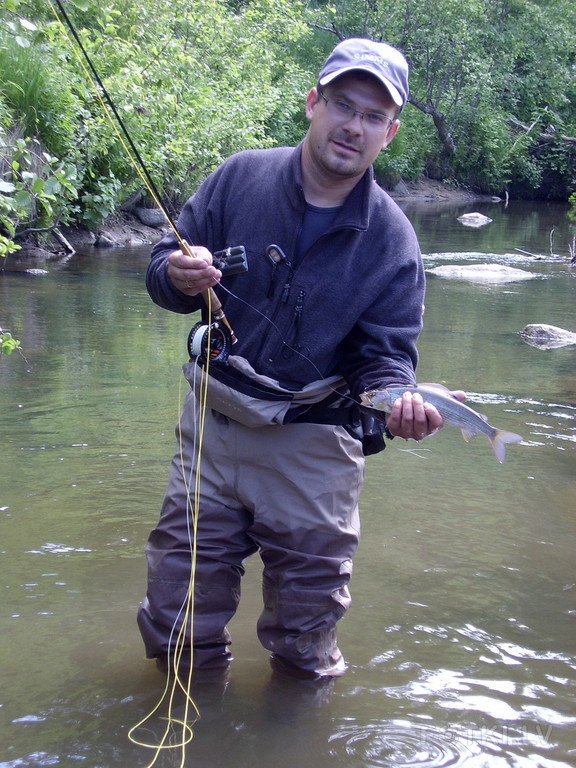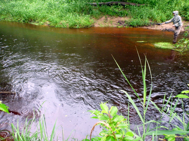 Утром, ну или если быть точным то уже днём, собрав пожитки решили переехать куда подальше. Покатались, потыркались и наконец пристали к местечку вроде персрспективному, но уже на другой реке. Опять неторопясь, но это не про Военного, разбрелись. Военный же улетел сломя голову куда то. Может знал чего а может предчуствовал? Глубоко на речке, но на противоположном берегу каменистые выходы с травой. Вот их то я и стал облавливать новым воблерком. Может на пятом забросе рыба села с таким всплеском, что я подумал будто ненароком попал на жереха случайно. Повизжал фрикционом, повозил вкруг себя весомую голавлиную особь и не снимая с воблера быстренько отнёс сие чудо голавлиного происхождения к Андрику на фотосессию. Быстренько в перемешку с охами и ахами засняли и под съёмку на видео так же быстренько отпустили в реку. Решаю закрепить результат и через минут пять ещё один монстрик вяжеться на воблерок. Чутка поменьше, но задвушный точно. Отпускаю стангами не беря в руки. Да и в руки такого опастно брать. Если вертанёться, то обязательно воблер куда-нибудь загонит и это, куда-нибудь, наверняка окажеться твоей рукой. Затем ещё несколько поклёвок, пару килошничков и всё . Стас тоже даром времени не терял. Изловил пару щукасов, одну из которых я видел и пару башковитых голавлей. Как то вот так мы и завершили рыбалку. Не то Андрику, не то Стасу вдруг по делам понадобилось ехать в Ригу и вод ведь незадача, в Ригу нужно одному, ну максимум двоим а едут все!