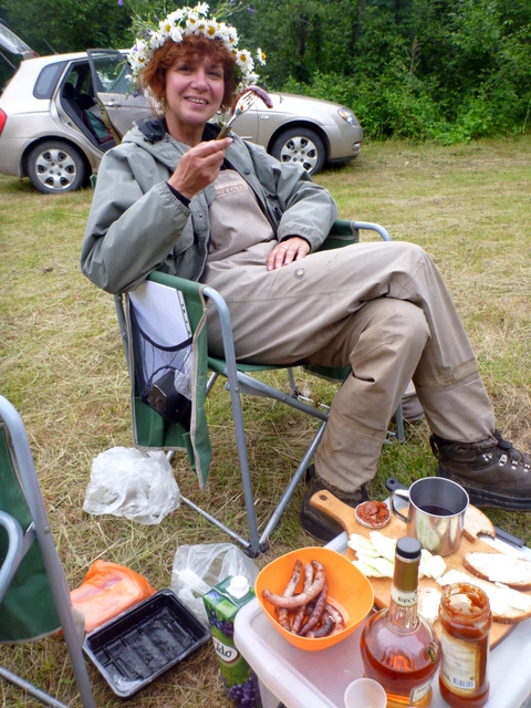 Опять пропущу про природу, ведь все и так знают как она прекрасна! Но один случай всё же опишу. Ехали мы по лесной дорожке и вдруг видим, что нам на встречу движеться нечто звереебразное из далека напоминающее подушку на ножках. Это нечто в один момент вдруг вспоминает, что у него есть дела совсем в другом направлении и начинает трусить в обратную сторону, но очень медленно. Мы на джипике догоняем этот бегуще-плетущийся мешок и почти упираемся бампером ему в зад, но невзирая на день он не собираеться уступать дорогу и продолжает трусить не меняя курса. Пришлось гудануть... Оборачиваеться изумлённая и удивлённая полосатая морда барсука, но движение продолжает. Андрик всё никак не может совладать с фотоаппаратом. И только после второго гудка, барсук недовольно семенит с дороги в лес, там останавливаеться и пялиться на нас, мол разъездились тут всякие. Я объясняю Андрику и Военному, что если барсука напугать, он как плохой бегун или танцор враз прикидываеться мёртвым и охотники берут его без выстрела, убивая полкой. В Андрике вмиг проснулся охотничек и он а за ними и Военный ломанулись в лес. Анрик в пять прыжков настиг беглеца, но то ли тот был мамой необучен, то ли вообще неправильный какой бракованый попался, но косить под мертвяка он явно нехотел. Уставился на Андрика неморгающим гипнотизирующим взлядом и внушил ему, что вайдерсы прокусит запрсто. И ведь даже не рычал и не оскалился, но внушил однозначно, т.к. Андрик враз отказался от затеи с ним знакомиться поближе и дал ему спокойно убежать или усеменить. С той поры у нас и нету барсучьего целебного жира. Главное, что и до той поры небыло а стой поры просто не стало!