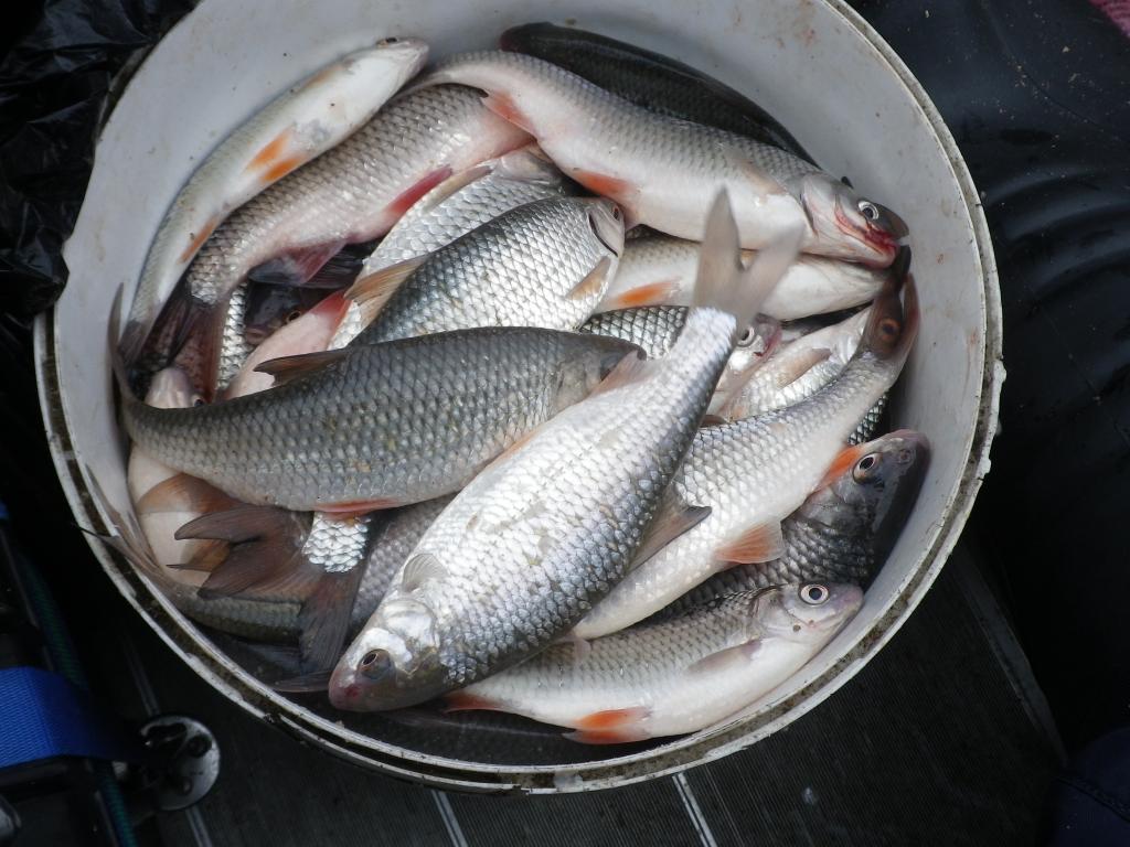 С утра клёв сразу. с добавлением в воду корма для рыб, ещё лучше. . И как то быстро ведёрко заполнилось.