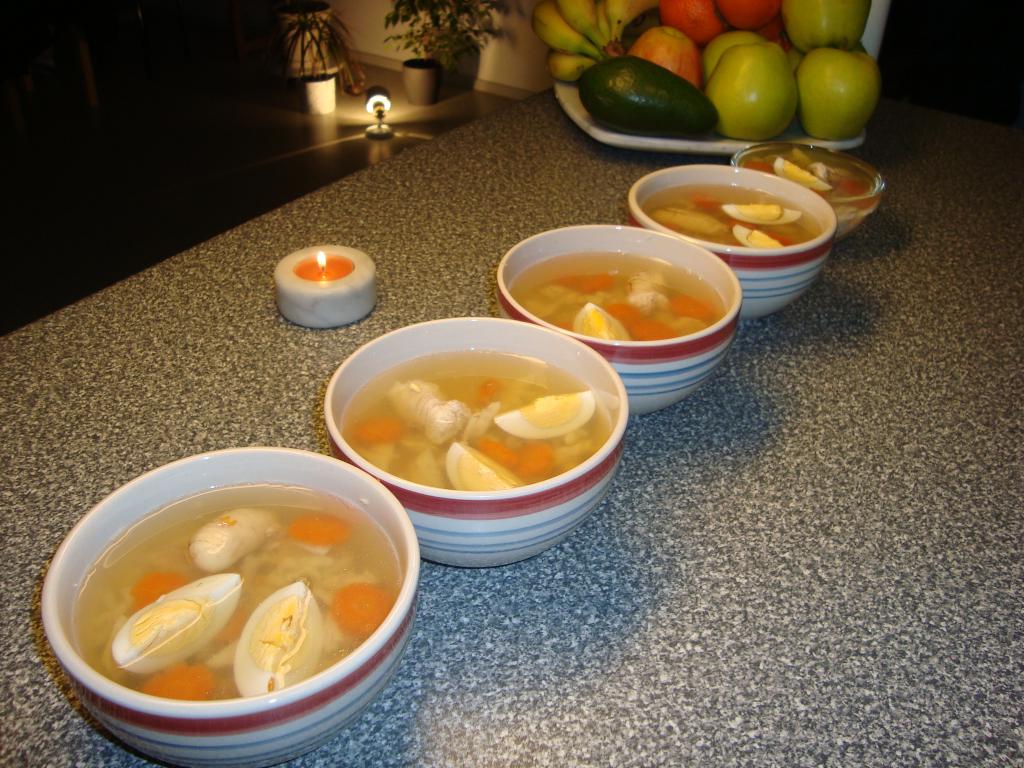с варёным яичком и марковочкой . Думаю , что рецептуру выкладывать не стоит этих блюд , уж больно оно известны и просты .