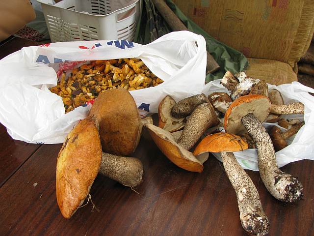 Все найденные белые, подосиновики и подберёзовики - червивые переростки. Взял два белых и по десятку подберёзовиков и подосиновиков, точнее то, что от них осталось после фигурной резки.