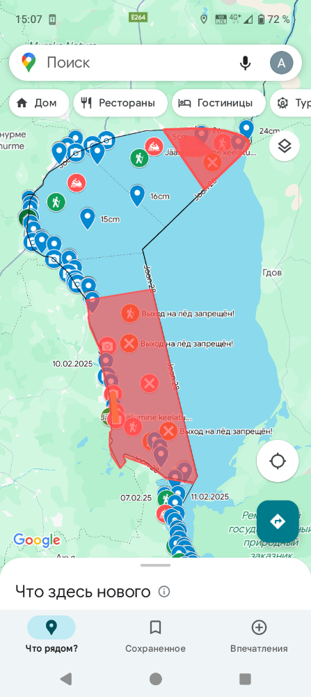 Уже на берегу заглянул в Гугл карту, а там красных участков не стало. Озеро открыли полностью.
