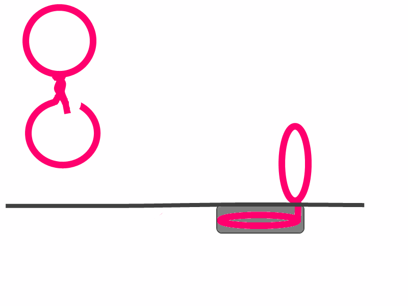 ..видимо восьмёрка верхним кольцом огибает канал с шариком, а нижнее снаружи т.е петля для крючка