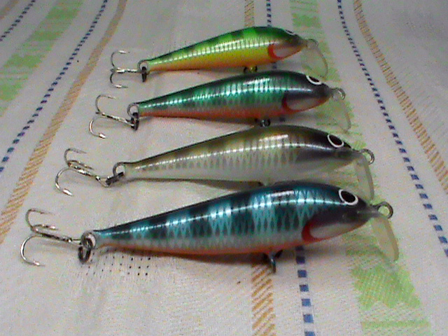 Доделал последние в этом году воблерки, абаши, игра средне амплитудная, средне частотная. Все огружены с двух сторон средней петли. Самый яркий новогодний, размер 75мм Этот морковка с блестками, размер 65мм И четыре примерно одинаковых 70 мм