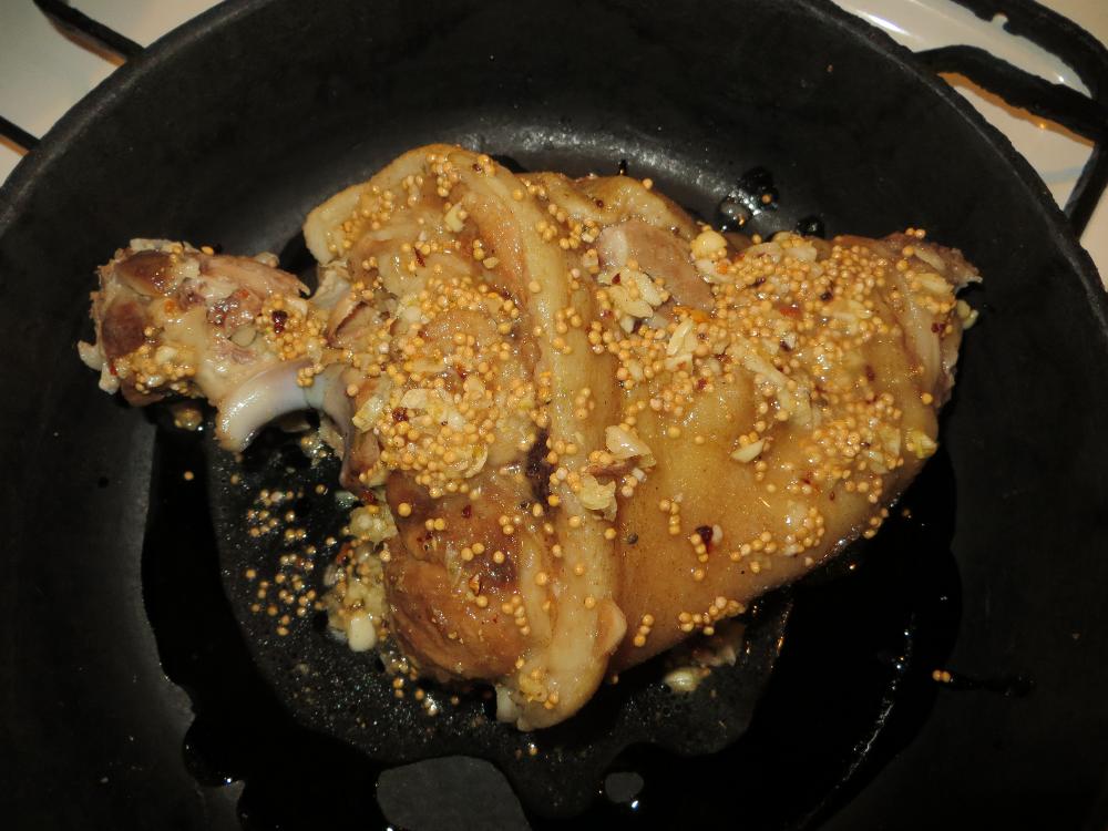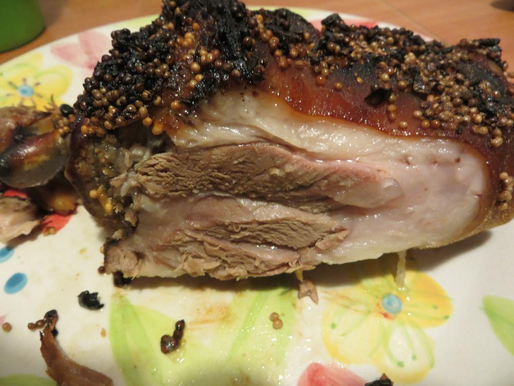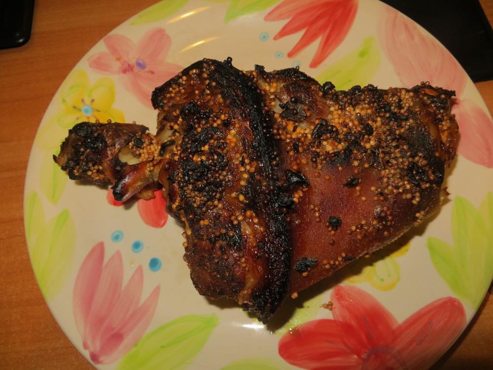 Нашел в холодильнике рульку,на просторах интернета рецепт,и решил приготовить оную,да позажаристее,с корочкой чтоб была . делал все строго,по рецепту :) Отварил,натер мёдом со специями,зажарил, накормил семью :dance3: Ингредиенты (слово то какое мудреное :D) Рулька,мед,семена горчицы,перец чили .чеснок,соль. Бутылочка пивка(для себя родимого :)