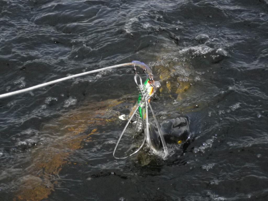 В этот раз решил не ходить по старым точкам,а проверить один ,ранее,приглянувшийся участок. Ловил на слайдер ,десятку,разрисованную Володей. Выходы пошли сразу,но так как слайдер был тонущий и цеплял дно,поменял его на плавающий. За пару часов поймал 5 шт.,Вся рыба 1,5-2кг,несколько шт,за двушку.