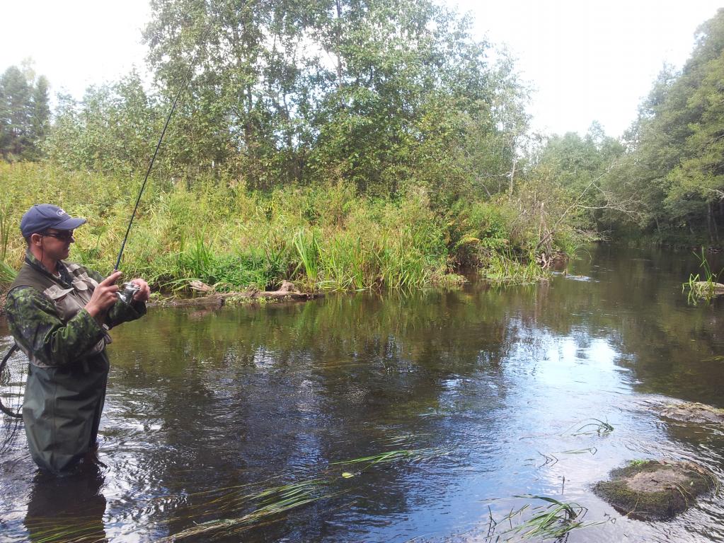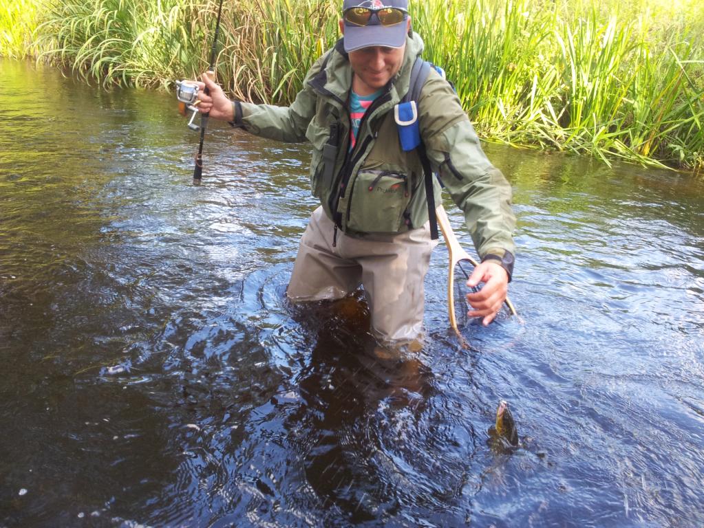 Тоже под самый закат выскочил на один ручеек. На природе красиво, теплый тихий вечер. Штук пять форелек отпущено, одна из них околозачетная. остальные - 200-400 г. Рыба во всю хомячила насекомых, выдавая свое присутствие. До нахлыста руки не дошли - просто не успел. Да и до мест обитания более крупных особей не дошел. В 8.40 у воды уже темно. М.б. до закрытия сезона еще разок удастся выбраться.