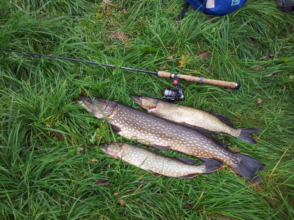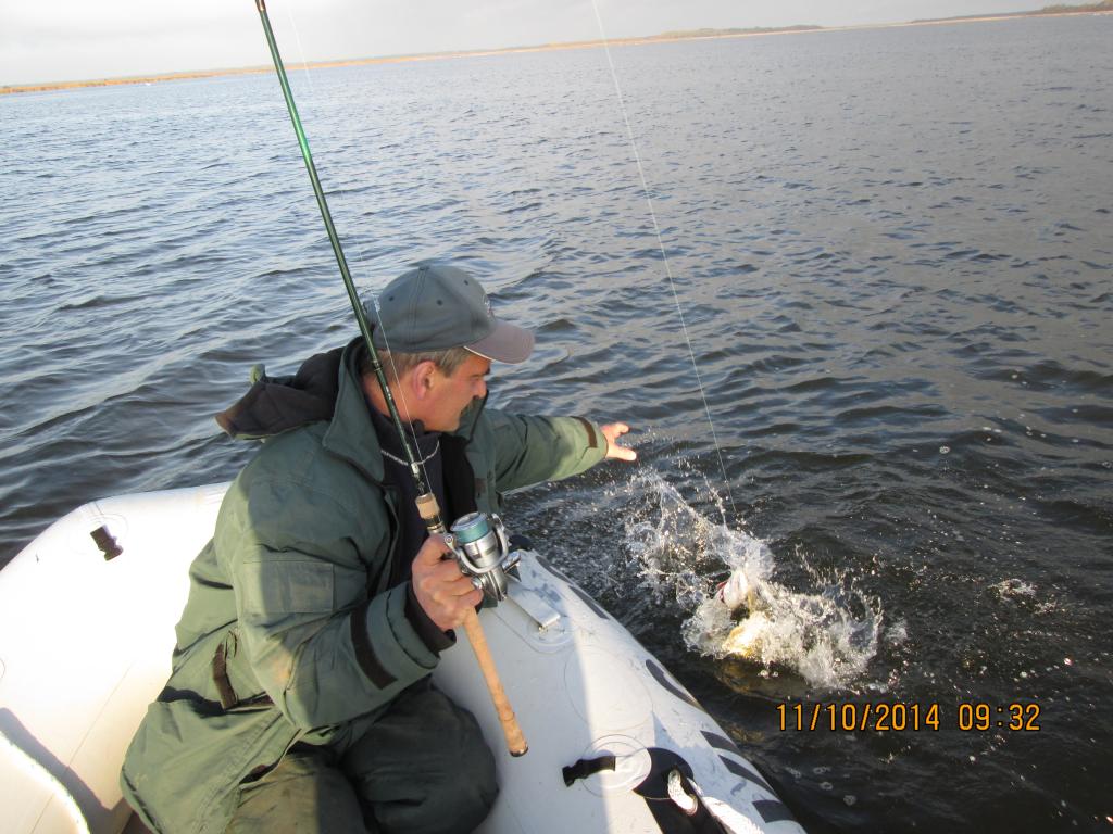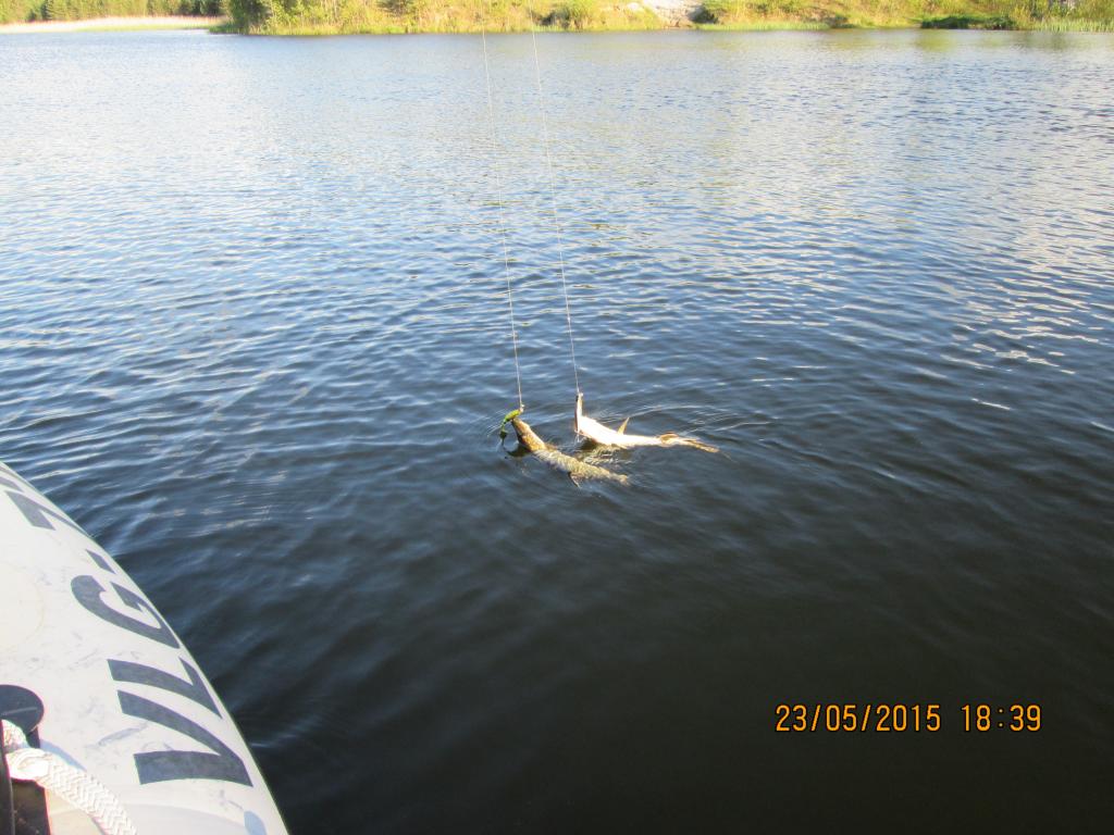 В пятницу 10.10.2014 побывали на одном озерке...я был там впервые...взяли лодку и в путь..озеро обмельчало и заросло.в итоге каждый заброс приносил пучок травы...было принято решение ловить на попперы...и рыб клевал...я ловил на поппер впервые...скажу что ОЧЕНЬ интересно..именно этот момент когда двухкилошная щука выпригивает из воды на приманку..ухх..кароче это надо видеть...очень много пустых поклёвок но удовольстие и восторг от увиденного и прочувстванного не передать словами...ловили двумя экипажами по 2 человека...обратно было отпущено десятка 2 карандашей...а мерных взяли на толпу 7 щукарей...было и парочку досадных сходов крупной щуки...и еще пару окуней взяли на дорожку...мой улов состоял из одной щуки и окуня...у кого то получше у кого то похуже..но в целом все остались довольны...