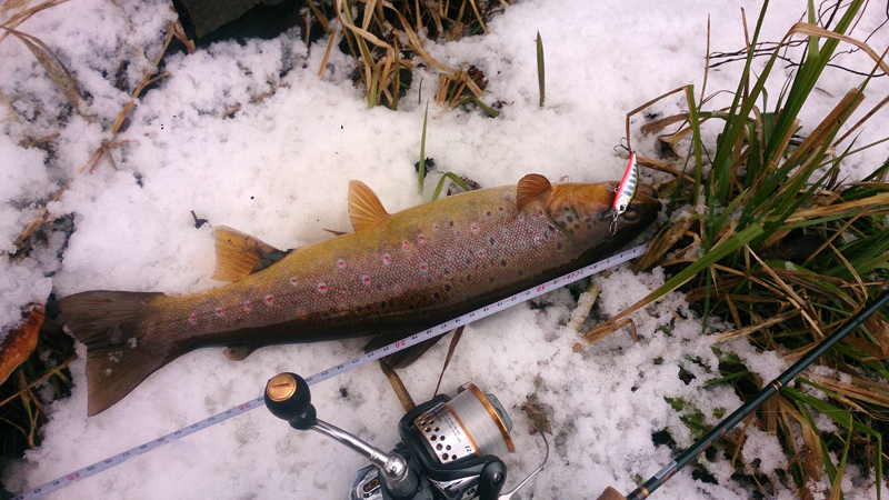Первой влетела щучка-недомерок, сошла избавив меня от нравственной дилемы, что делать со щукой в форелевой речке.