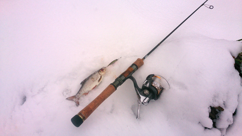 Эта зима подарила много интересных моментов,красивых сюжетов,запоминающихся рыбалок;не мало удивляла по клёву на водоёмах.Есть за что ей сказать,спасибо.Вот и вчера,новое интересное место Игорь показал,понравилась рыбалка.А нынче опять дома не усидел,последний лёд,он как и первый;ещё разок,но надо сходить.Проснулся рановато,проводил всех,и решил прогуляться до речушки.Весна,утро красиво,слабенький,но морозик;птахи малые разноголосят.Речка уже вскрылась,и выше,и ниже,и берег стрёмный.Первый шаг и по колено.Пришлось строить переправу.А на ямке лёд ещё добрый,быстрее поплывёт,чем провалиться.Лунок с десяток уже пройдено,а особо не разходишься,решаю задержаться на одной подольше,посижу поиграю.То так поиграю,то эдак,бах и плотвичка.Нормально думаю.Уже интересно,неужели здесь рыба есть?Сижу дальше,цап-цап и пара окушков уже на льду.Ну ваще,думаю,круто.Но до круто оказывается было ещё несколько минут времени.И вот плавное касание к сторожку,отпуск,и сразу следом,плавный и полный загиб кивка,не припомню таких поклёвок.Подсечка,повезло,что шпуля свободна была.И тут началось такое,ну настоящее представление.То леску собираю,то стравливаю,всё очень быстро,скорость у рыбы бешенная;два раз пролетала под лункой,ну думаю хана мормышке,щука наверно,судя по бочине сверкнувшей, здоровая.Однако,когда удалось всё-же завести в лунку,я чуть с ящика не свалился от неожиданности.Да,до этого таких плотвиц зимой,не доводилось выуживать.Опять повезло