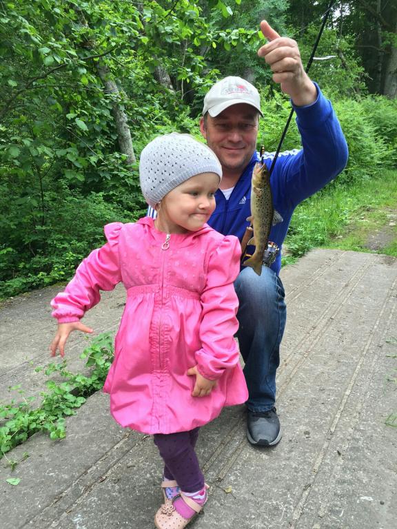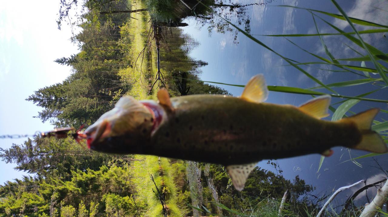 А сегодня вывез девченок за земленикой, которая к сожалению еще толком не поспела. Заодно заскочил на ручеек, на котором в детстве неплохо форельку полавливал. На втором забросе первая пеструшка упорно сопротивляется. Прогулялся немного, удалось еще несколько поймать. На одной ямке вышла и какое то время сопровождала приличная мамуля за килошку точно. Речка жива, что не может не радовать.