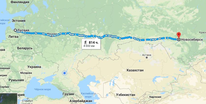До Москвы 921 км. . Из Москвы до конечной ещё 3900 с копейками..... Даже если на 1000 км. сократить, всё одно как то не катит за месяц.