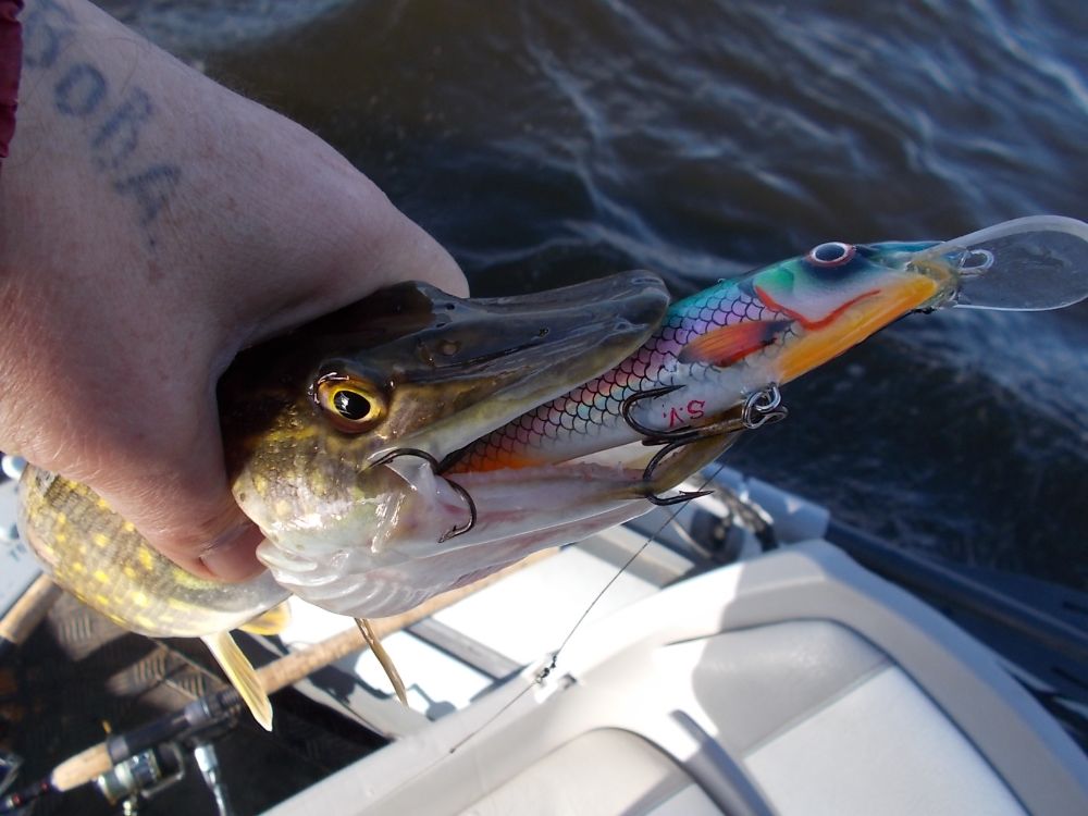 Товарищ на балансир выманил щучку зачетную, а окунь брать отказывался.