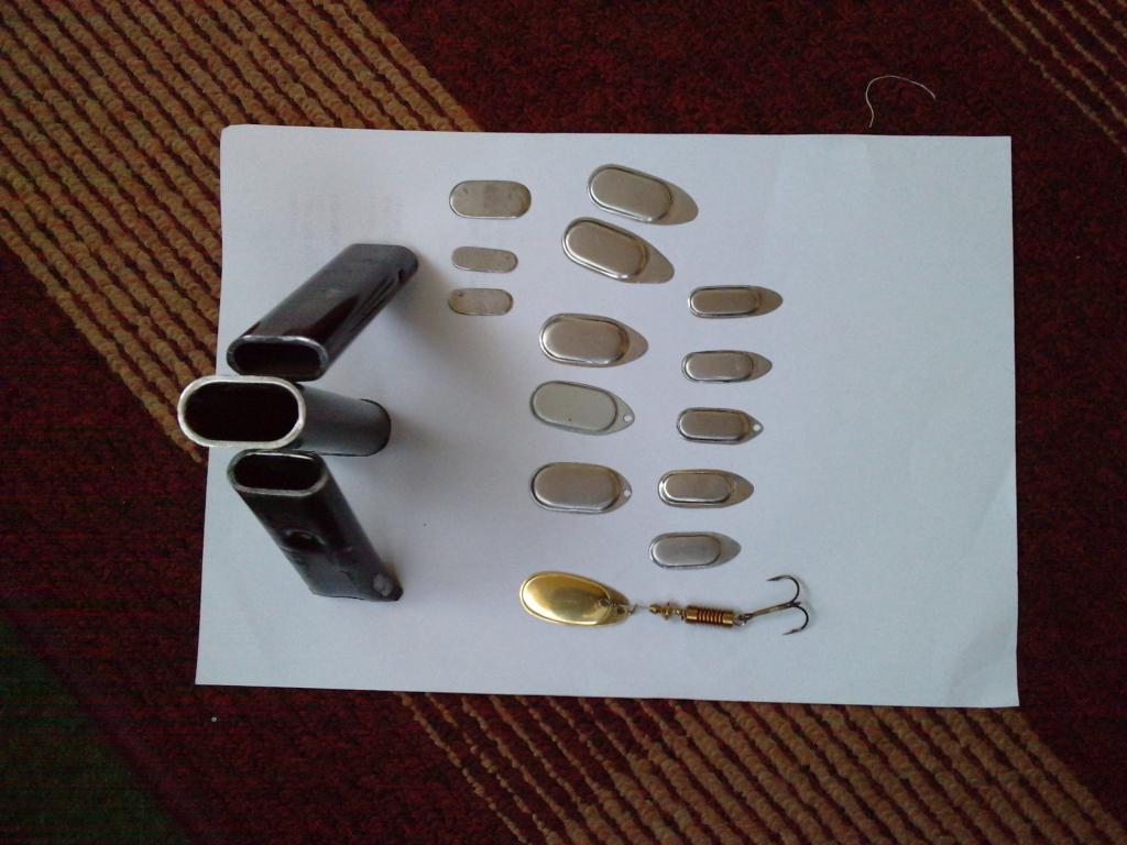 Доброго времени!Мои нехитрые пресс-формы.Прессую от меди до оцинковки в тисах комнатного формата.Блёсны все уже битые рыбой.Новых не делаю давно,по речке мало,кто стал ползать с блесною.Кривизна осей-отчасти предотвращает закручивание лески.На игру-не влияет.Проверял.