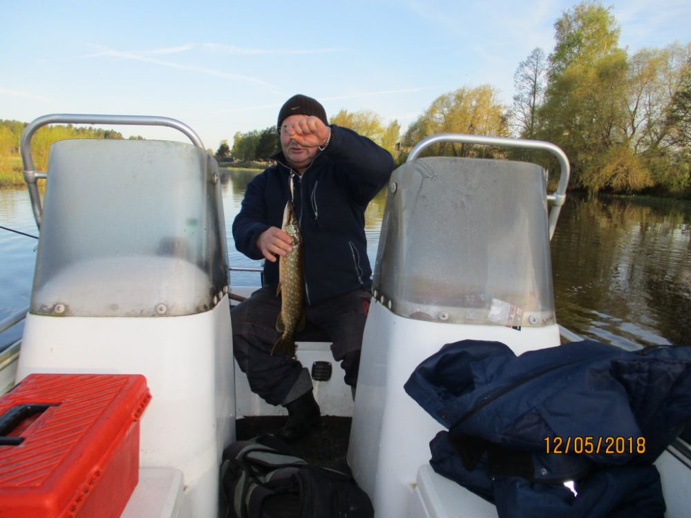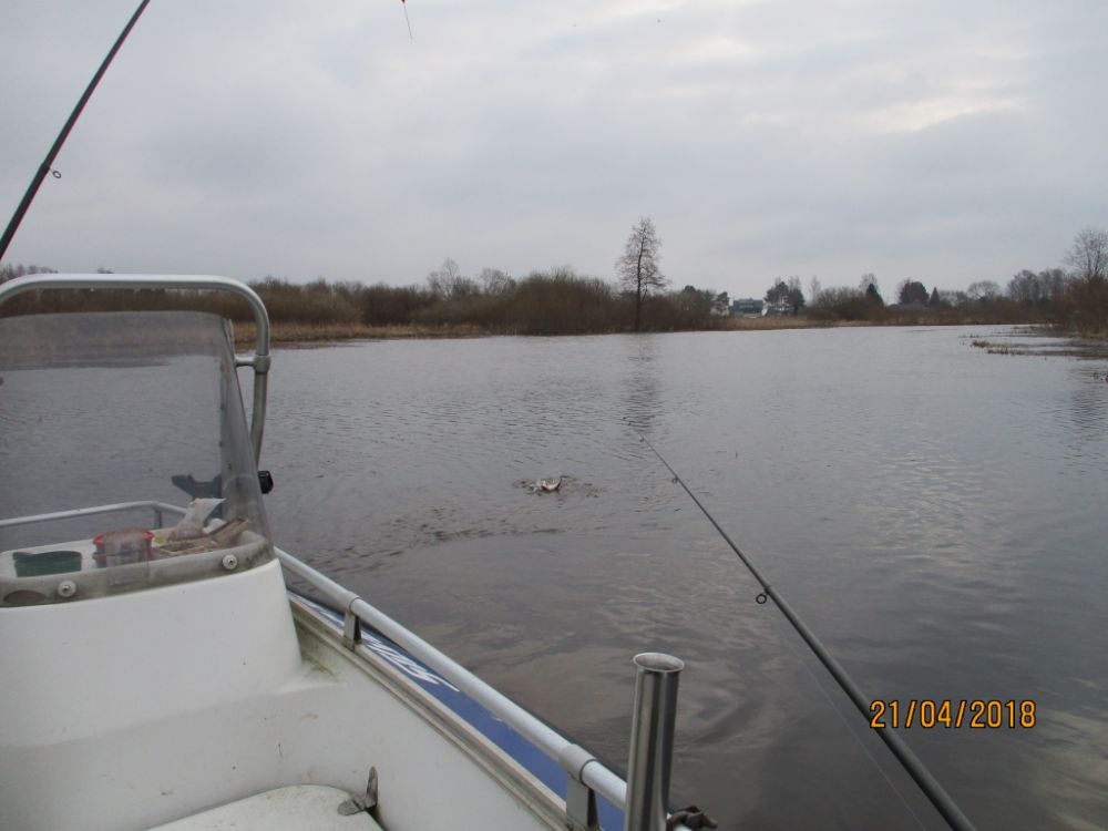 В субботу погода как и обещали. Ветер такой, что по берегу деревья падали. Но на точке вроде как ветер в спину, да и камышыки прикрывают. Но всё одно как крутанёт, так один раз даже с якорей сорвало. А по берегам щука бесилась =. Своими делами занималась.