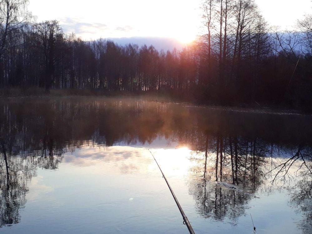А вчера вышли, вроде и не поздно, а прикормленное место уже занято. Пошли выше, на когда то уловистые места. Погодка сказка.