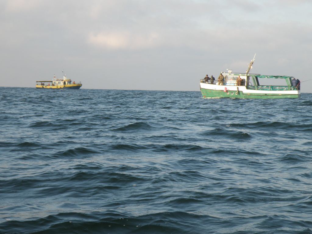 и бельдюга, и камбала и главное, что всё это на джиг. Изловили с пяток рыб по два кило и устав от прессинга, ушли подальше. Опять то откровенная мелочь, то вдруг начинает проскакивать приличная рыба. Ветер фактически стих и переходы стали как комфортными так и безболезненными для пятой точки. Выполнив норму а это большое ведро на , да не знаю я на сколько литров, одно могу сказать, что оно действительно большое и таз приличного литража, решаем, что для первого дня пожалуй хватит. Вот и лодок уже на воде не видно все ушли в берег, на глис и на точку сброса.