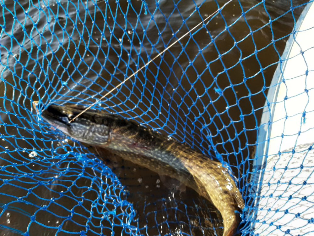 На своём месте проверенном с первого заброса ловлю бесполосого окуня, похожего на басса, гр.200. Потом пара тычков и затишье полчаса. Оказалось ясно почему, когда аккуратно так села щука 3600+, просто тупо упиралась, не хотя кружа вокруг лодки, не поднимаясь минут пять. Палка лайтовая дропшотовая, до 15гр. Блюфокс 3 вертушка, ловил без поводка. В итоге, взял конечно. Фоткать неудобно одному. Рыбу отпустил эту.