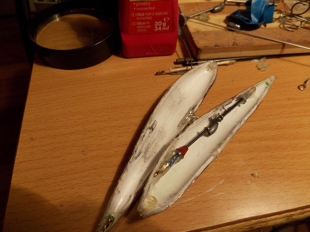 Долго не выходил потому,что всё свободное время занимался моделью. 4 раза делал вскрытие / прям как хирург/,приходилось подтачивать бока формыв местах сужения на конус и ставить стопора ограничители, т.к. застревал маятник -балансир.Да гораздо удобнее делать всё из прозрачных форм, а не в слепую. Постоянно приходилось трясти и переворачивать.Очень понравились биения в центр. части и в области анального плавника, ощущения судорожного биения маленькой рыбки, и звук получился ОК. не такой , как от шариков.В головной части смысла такого узла не увидел, там нет нужной ,для хорошей раскачки,амплитуды колебания.В центр. части у балансира есть возможность центрифуги /вращения вокруг оси/, но будет происходит ли оно сказать тяжело. Вот если бы это было где-то в хвост. части то можно было-бы это утверждать процентов на 70. Но тогда вопрос:- какая должна быть форма ? Стоит ли всё это делать однозначно сказать тяжело. Думаю - ДА. Нужны испытания на большой воде, а лучше на рыбе