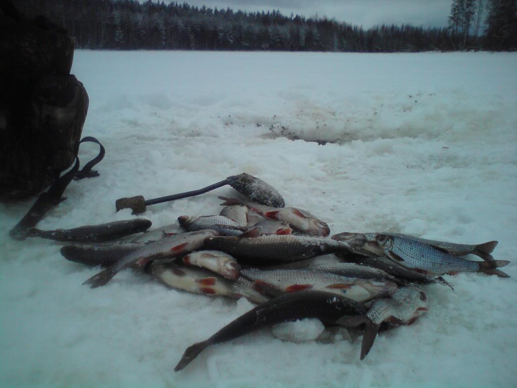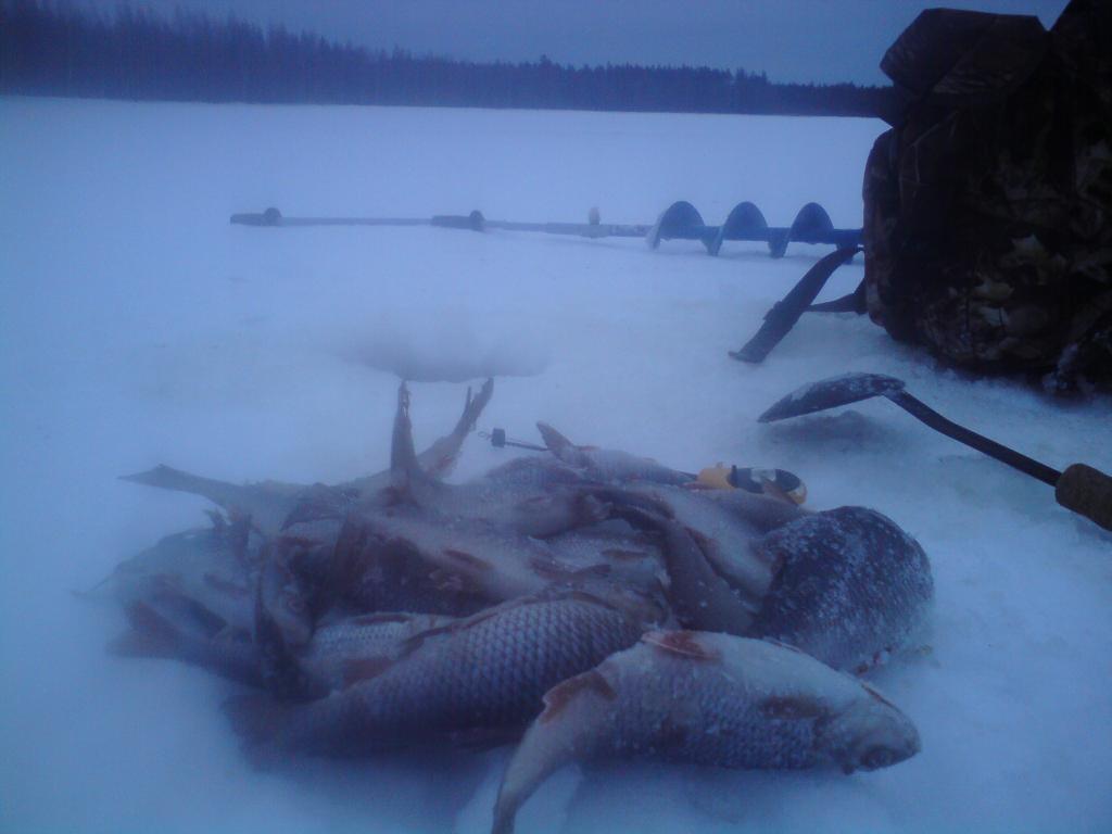 Боря тут скорей не в леске дело.Меня вот что поражает зимой,это(как бы правильно выразиться)КПД Игоря.Зимой за ним не угнаться,словно парит над лунками,пустая проводка,и смотрю уже над другой лункой склоняеться.Брал сегодня уроки Мастер класса.Смотрел как оснастка сбалансирована,день провёл не зря.Ну я был в половину линивее,подолгу пытался заставить рыбов ловится с одной лунки,моментами даж получалось,но конечный результат был поскромнее.Ну и пару фото Спасибо Игорю,за хорошую компанию