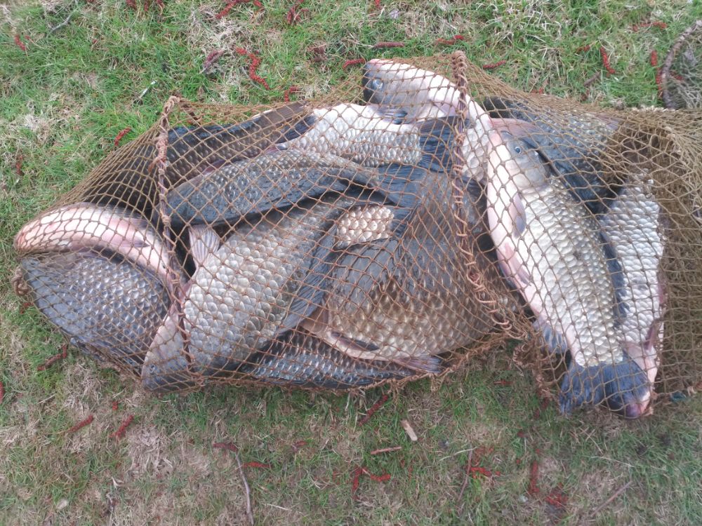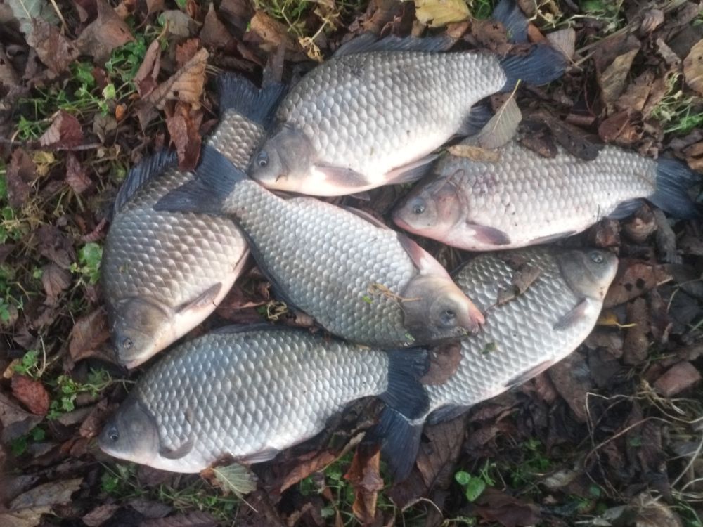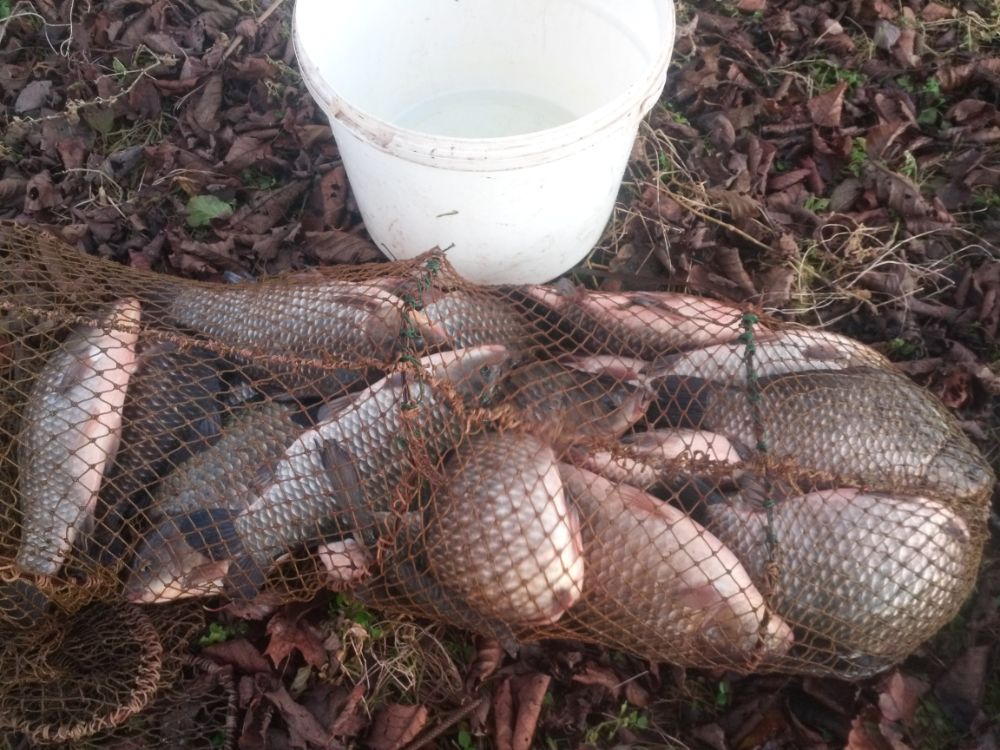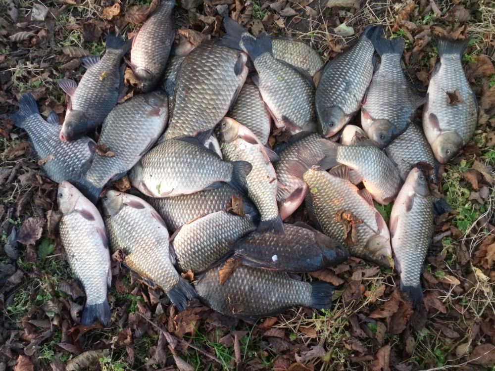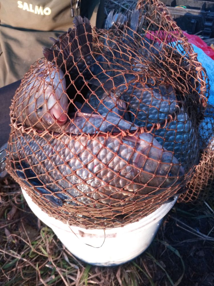 Карась до кило. Рыба была не нужна. Садок развязал.