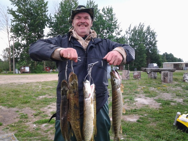 Щука у Макса уходит....досадно.Еще два часа теряем на поиски прозрачной воды.(возможно если бы остались на прежней площадке,улов был бы больше.Ровно в 15-00 мы были у судейского столика.Через час были оглашены результаты-клуб Striborg занял 2 место. Так как соревнование проводило Salmo то и призы были от этой компании.Очень вкусным показался рыбный суп-съели с Максом по 2 миски.Спасибо залив Тастамаа ,до встречи!