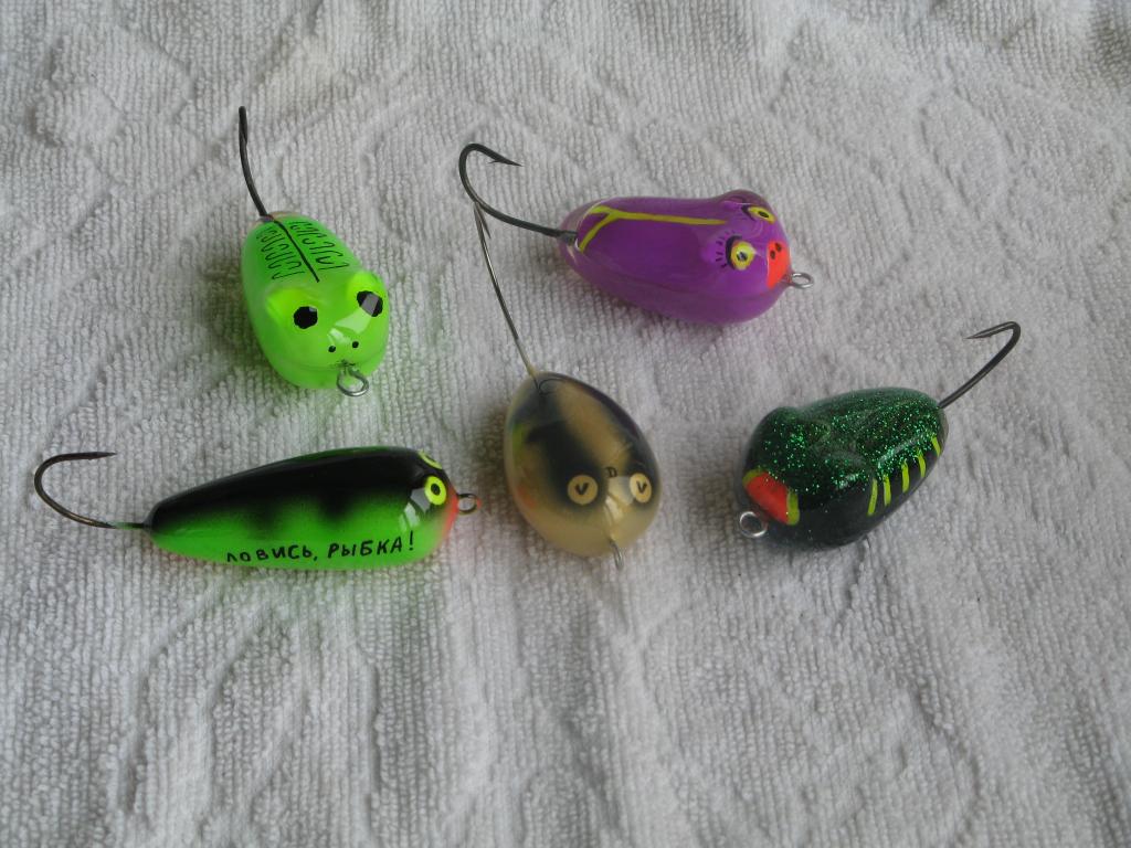 Похоже это единственный вариант, силикон на крючок что бы жало в резине, как незацепляйка. Вообще можно оставить и так как есть, стандартный вариант яйца тоже ловит. Что мне понравилось в лягушке это двойник в теле, в основном атаки в тело. Хотелось бы сделать что то подобное но думаю из твердого материала ничего не получиться.Игорь писал(а):Сергей, огрузку в центре, по типу ванька-встанька,на крючман силиконку, нет?На дальность заброса конечно повлияет, но думаю не очень критично, зато количество зацепов, ну 1-2%.