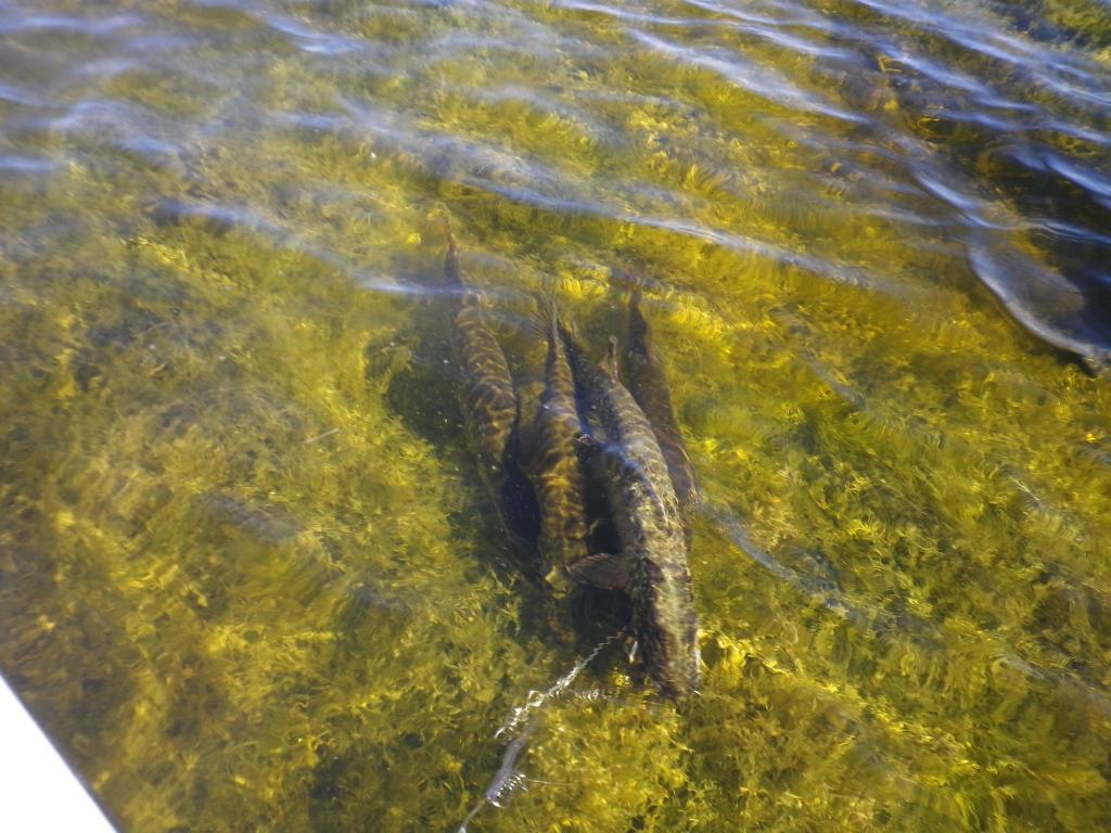 Вообще по большой воде рыба рассредоточилась и массовых партсобраний не обнаружили. Вдоль камыша достаточно много мелкой щучки.