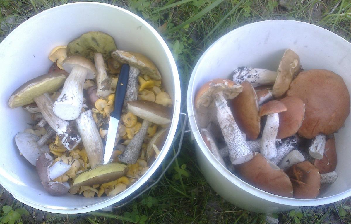 Пара подосиновиков, три колпака и три литра лисичек и горькух великорослых тоже три литра. Сегодня
