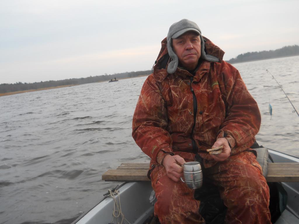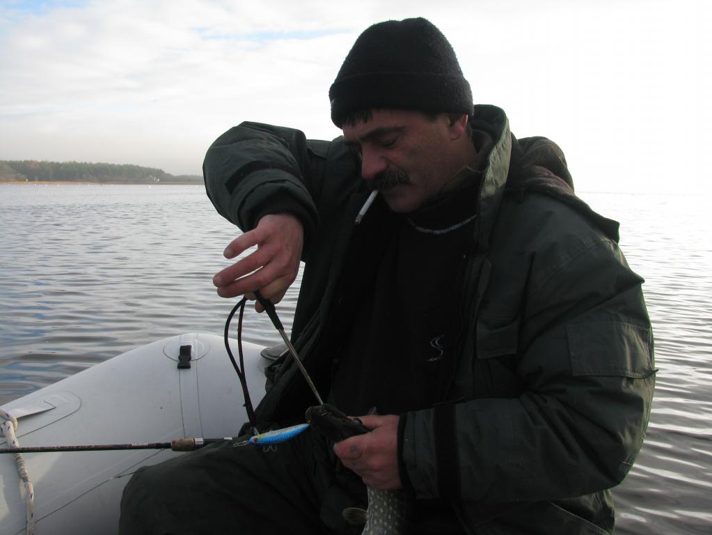 Давно я не был на рыбалке, аж месяц почитай цельный. И вот начинается что то наклёвываться, предварительный созвон с тёзкой среди недели. В пятницу окончательный, но, закрадывается сомнение в моём участии. Тёзка успокаивает, и обещает доставить моё тело в любом состоянии. Это уже хорошо. Но мне то ой как не хочется его подводить. Но, всё слава богу получилось без посторонней помощи. Утренний выезд чётко по запланипрованному времени. По прибытиии на площадке примерно 8 машин. Основная масса уже на воде. Мы то же, не спеша собрались, да и выплыли. А погодка!!!! Это не погодка!!! Это рай какой то. Ну не верится что конец ноября. Штиль, туман, солнце. Красота. !!! Уже тока ради этих моментов стоит приехать. Начали с проверенных точек, но там глухо. Минут через 40 полоскания всяких приблуд, садится шнурочек. Ага.Есть повод по стописят. Руки рыбой уже пахнут. Ну надежда всё таки кой какя появляется. Правда эта «надежда» так и приследовала нас весь день. Проверили и дальние уголки, и ближние, ничего. Выходы есть, волну гонит за блесной. Но брать не хочет. А та что садится, то размерчик!