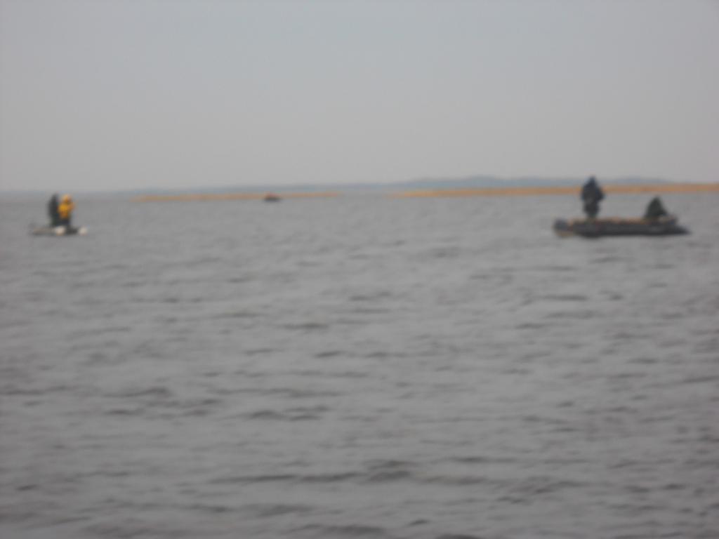 Вода-сплошное молоко, ветер с нарастающим усилением....Мы проверили свои старые точки, и в 14 часов, без единой поклевки ушли домой. У одного экипажа в улове было пару щук... Спасибо залив мы еще вернемся...