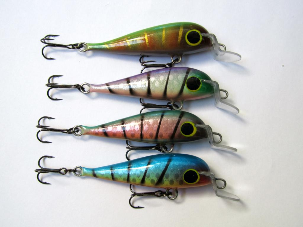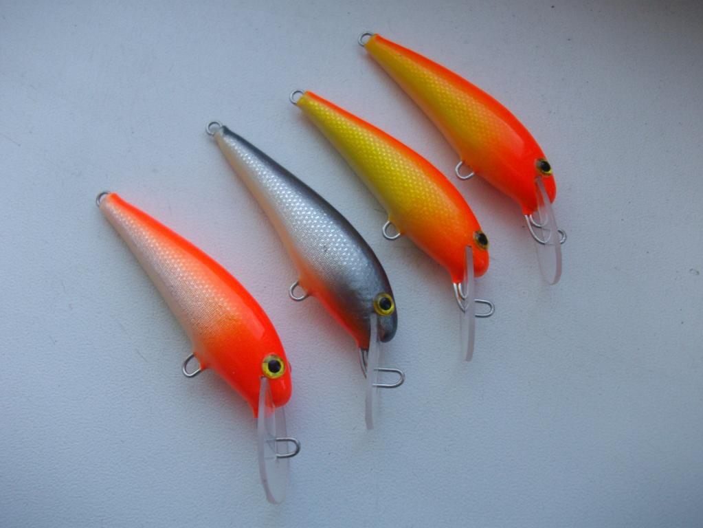 Добил еще небольшую партию на щуку. 12 см, средний вес 20 гр. , плавают,почти суспендеры, игра со средней частотой и амплитудой, мне понравилось и без настройки, лишь бы щукам было в тему, материалы те же, только слоев побольше, щука все же. Эти можно и покидать... Как то на рыбалке в один день загрызли "шартрап рапаловский" из бальсы, 16 поднял от 1,5 до 3,0 почти всех на него... Пробионат все же мягковат, на глубинники эпо/компаунд надо бы, да вертушка не готова пока.
