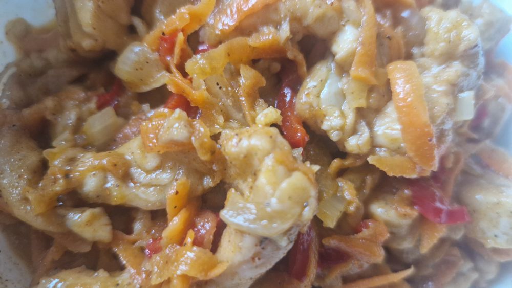 Разгребаю морозилку, готовлю к осенним запасам. Щуку филе жарю и решил заодно хе с неё сделать. Тоже вкусно, но если судак вареный уксусом и соком лимона мягкий, то щука всё же слегка резиновая по консистенции. По этому сделал чисто с морковкой по корейски, только лука добавил, в принципе, всё как в рецепте выше, только не пассевировал на сковородке, а все помесил слегка рукой и залил не нагретым маслом, мне так овощи по корейски нравятся больше.