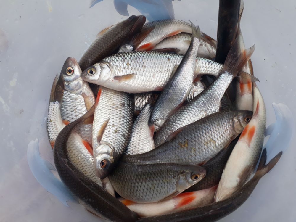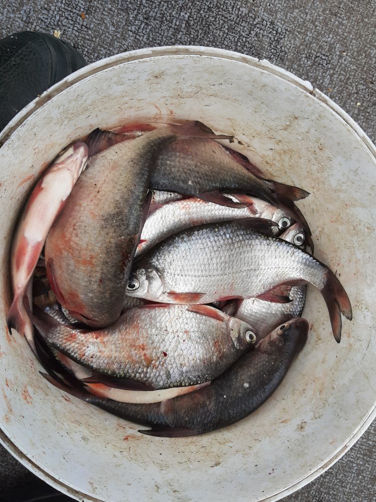 улов на двоих. Домашние весы показали 14кг По возвращении, у тех кто был возле бочки на льду тока мелка густера.
