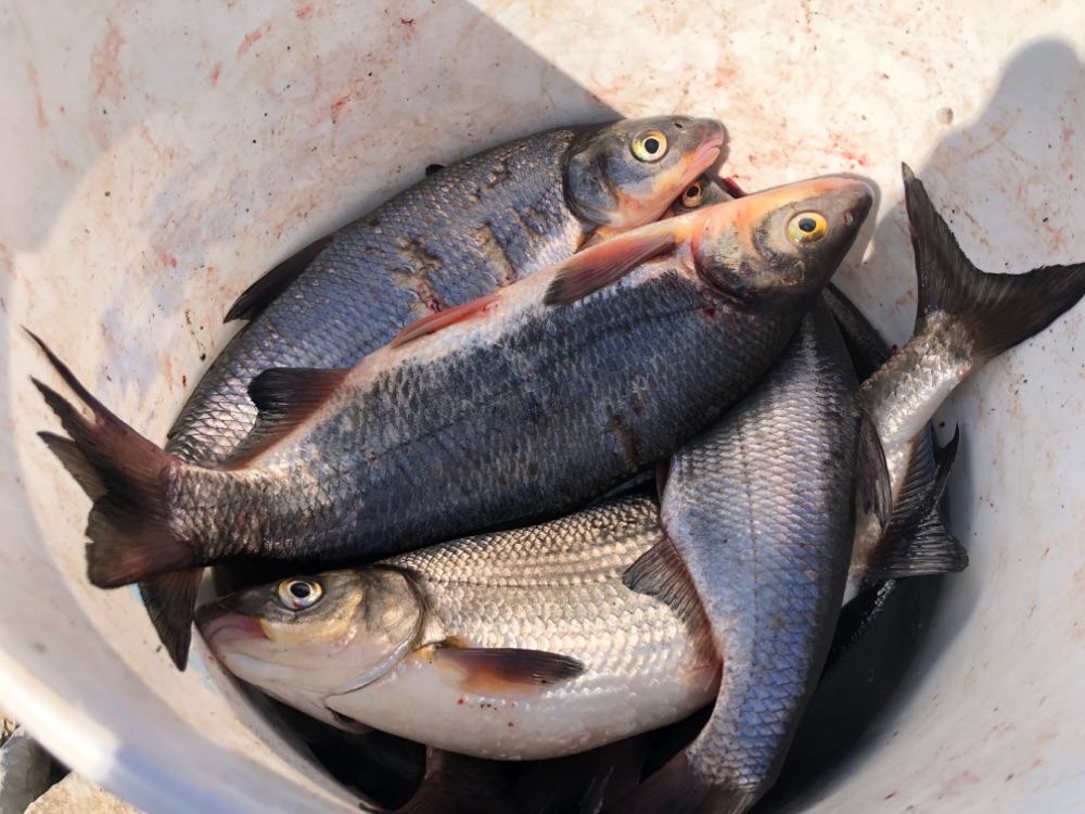 К 9 утра 2/3 ведра были заполнены рыбой, поднялся ветер и было решено закругляться.