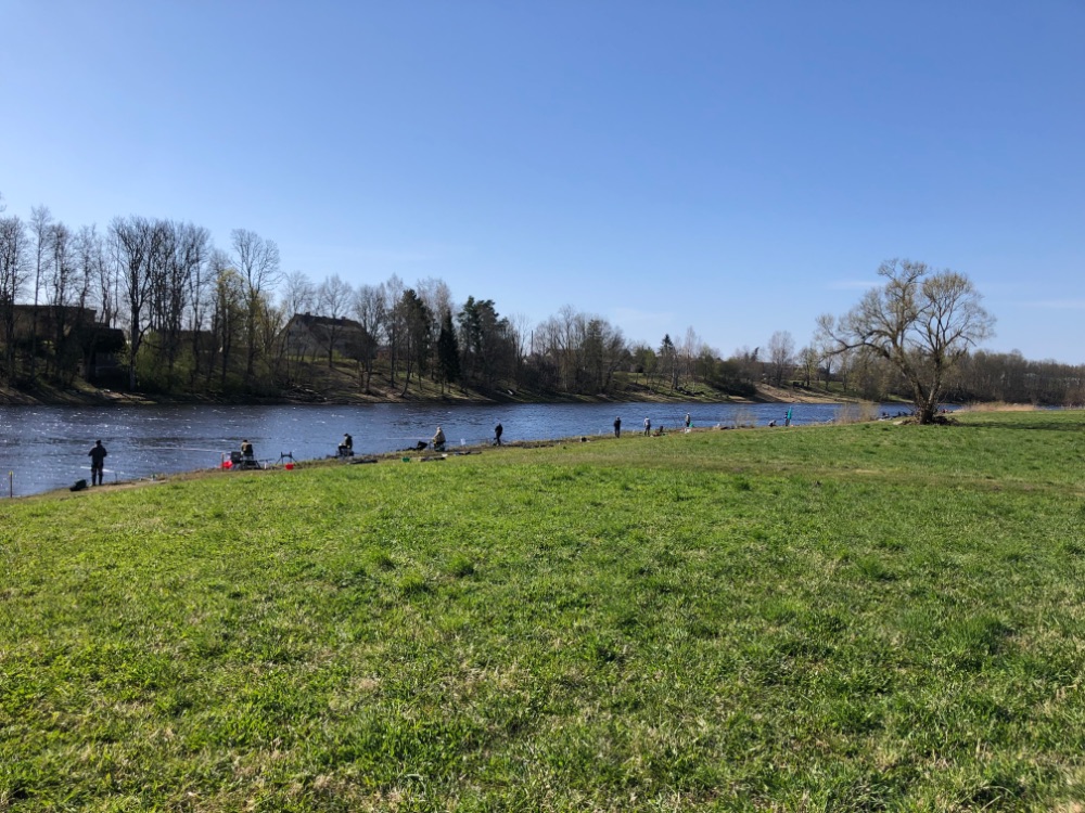Я в субботу прошел от моста над устьем Навести вниз по течению реки Пярну около 3,5км - люди были, но и не сидели друг на друге. Каждый спокойно сидел на своей полянке и полавливал.