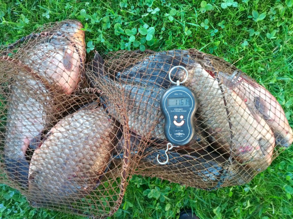 Не с самого утра, ближе к обеду, мыслишка посетила:а не попробовать ли половить карасика. Не хитрые сборы, но беру с собой и фонарик и светлячки, на всякий, может и по темну попробуем половить. Часа два дня уже было, подъезжая к местечку думаю:куда я еду? - в колонне машин, и припарковаться наверно негде. Негде, так негде, развернёмся да уедем. Два рыбака собираются, пешим ходом проезжая мимо поздоровался, спрашиваю:это что, всё рыбаки? Показывая на припаркованные машины. - Да. Отвечают. - в два раза больше было. Сделаю кружок, найду место, хорошо, нет, так уедем. И бах, прям перед нами, отьезжает машинка, мы на это место нырк, вот так повезло. Вышли из машины, собака аж растерялась, место для неё новое, и очень уж оживлённое, да и сам опешил и до сих пор в себя прийти не мог до конца, понимаю была б весна, тогда понятно, а тут середина осени и такое, ну ни как не ожидал. Идём вдоль берега, довольно плотно рыбаки стоят, где тут могло поместиться в два раза больше? Наверно не судьба, наврятли мы свободное местечко найдём. И когда уже почти отчаялся, бах второй раз заподряд везение, свободное шикарное, просторное местечко, где и вдвоём запросто рыбачить. Разложились начали рыбалку, опять всё не то, сильно не пресингуя полавливается плотва, крупная, но вся в точках, брать не охото. Переоснастился, не помогло;перешёл на квадратно-гнездовой обстрел в шахматном порядке, нет, ну нет удачи и хоть ты тресни, а кругом только и разговоров про полные вёдра непонятно чего, с вкраплениями карася. Да совсем разучился рыбачить, а чего тут ещё остаётся думать? Расстроился не на шутку, поставил оба фидера на точки работавшие по весне, солнце коснулось, горизонта, плотвичка замолчала, начинало смеркаться. И бах, от неожиданности аж подпрыгнул, первая нормальная поклёвка, да такая, что фидер чуть не улетел. Оказалось карасик, грамм шестьсот, уже неплохо, появился смысл и на темноту остаться. Через четверть часа второй, грамм на триста, ещё десять минут третий, грамм четыреста. Четвёртый через пять минут. И как разошлись, на обе палки, сами клюют, сами попадаются, мне остаётся только вытаскивать. Тут главное вовремя остановиться, с первой поклёвки прошло всего пятьдесят минут а у нас уже восемь штук, оба фидера на берегу, с одного карася не успел снять второго пришлось вытаскивать, ещё не совсем темно, успею собраться без фонаря, на жарёху за глаза, на этом решаю и закругляться. Уходили, был такой довольный, как очень уж давно не был, хоть завтра опять на рыбалку, всё вернулось и задор и азарт, и подруга меня поняла, видно радовалась, что закончилась грустная серия невезение. Спасибо водяному, и всем удачи