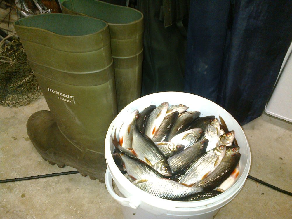 Не с самого утра, ближе к обеду, мыслишка посетила:а не попробовать ли половить карасика. Не хитрые сборы, но беру с собой и фонарик и светлячки, на всякий, может и по темну попробуем половить. Часа два дня уже было, подъезжая к местечку думаю:куда я еду? - в колонне машин, и припарковаться наверно негде. Негде, так негде, развернёмся да уедем. Два рыбака собираются, пешим ходом проезжая мимо поздоровался, спрашиваю:это что, всё рыбаки? Показывая на припаркованные машины. - Да. Отвечают. - в два раза больше было. Сделаю кружок, найду место, хорошо, нет, так уедем. И бах, прям перед нами, отьезжает машинка, мы на это место нырк, вот так повезло. Вышли из машины, собака аж растерялась, место для неё новое, и очень уж оживлённое, да и сам опешил и до сих пор в себя прийти не мог до конца, понимаю была б весна, тогда понятно, а тут середина осени и такое, ну ни как не ожидал. Идём вдоль берега, довольно плотно рыбаки стоят, где тут могло поместиться в два раза больше? Наверно не судьба, наврятли мы свободное местечко найдём. И когда уже почти отчаялся, бах второй раз заподряд везение, свободное шикарное, просторное местечко, где и вдвоём запросто рыбачить. Разложились начали рыбалку, опять всё не то, сильно не пресингуя полавливается плотва, крупная, но вся в точках, брать не охото. Переоснастился, не помогло;перешёл на квадратно-гнездовой обстрел в шахматном порядке, нет, ну нет удачи и хоть ты тресни, а кругом только и разговоров про полные вёдра непонятно чего, с вкраплениями карася. Да совсем разучился рыбачить, а чего тут ещё остаётся думать? Расстроился не на шутку, поставил оба фидера на точки работавшие по весне, солнце коснулось, горизонта, плотвичка замолчала, начинало смеркаться. И бах, от неожиданности аж подпрыгнул, первая нормальная поклёвка, да такая, что фидер чуть не улетел. Оказалось карасик, грамм шестьсот, уже неплохо, появился смысл и на темноту остаться. Через четверть часа второй, грамм на триста, ещё десять минут третий, грамм четыреста. Четвёртый через пять минут. И как разошлись, на обе палки, сами клюют, сами попадаются, мне остаётся только вытаскивать. Тут главное вовремя остановиться, с первой поклёвки прошло всего пятьдесят минут а у нас уже восемь штук, оба фидера на берегу, с одного карася не успел снять второго пришлось вытаскивать, ещё не совсем темно, успею собраться без фонаря, на жарёху за глаза, на этом решаю и закругляться. Уходили, был такой довольный, как очень уж давно не был, хоть завтра опять на рыбалку, всё вернулось и задор и азарт, и подруга меня поняла, видно радовалась, что закончилась грустная серия невезение. Спасибо водяному, и всем удачи