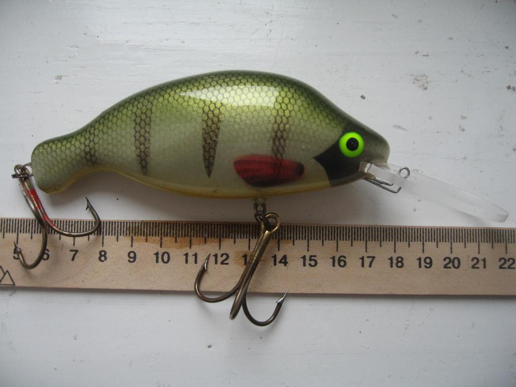 У меня была такая-см.25 в высоту.Д.70 мм.-со свистом любой воблер.