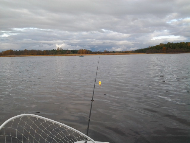 Дождь не давал возможности пощелкать фоток. Как казус - на заливе ходит щука, на вид 8-9кг с пирсингом из кукана, причем обе челюсти на кукане.....Ослабнет - можно поймать и освободить от кукана-свое она уже получила.....