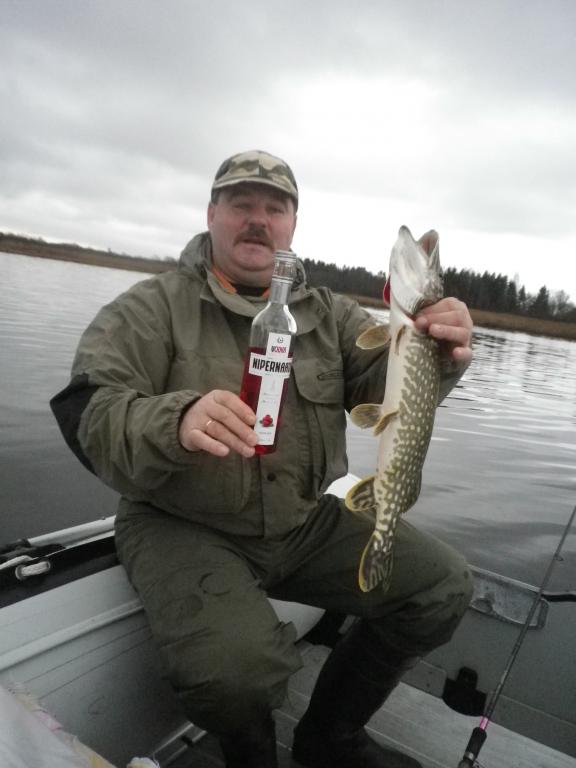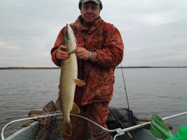 Посетили залив вчера с Игорем. Выходили от ихтиологов-геологов....Кроме нас была еще одна машина, да с площадки Таебла подходила одна лодка и весь народ. Ветер восточный 6-8 метров, воды нет( сантиметров 30-40 меньше нормы)..Ловили до 14-30, Щучка присутствует...полагаю,что будет клев в последние дни жидкой воды..., т.к. приманку хватала жадно. Самая большая-1,8кг, еще три по 1,5кг и четыре по 1,3кг...Меньше кило было только 2 шт., кои и были отпущены. Ловил на самодельный слайдер.....Был один удар, что руки вывернуло...но не засеклась(а может это и к лучшему)...У Игоря так же удачно и такой же удар ( а может дайверы балуются?...Интересно Олег еще в Норвегии или здесь?) С Этим и уехали домой, не дождавшись вечернего выхода щуки....
