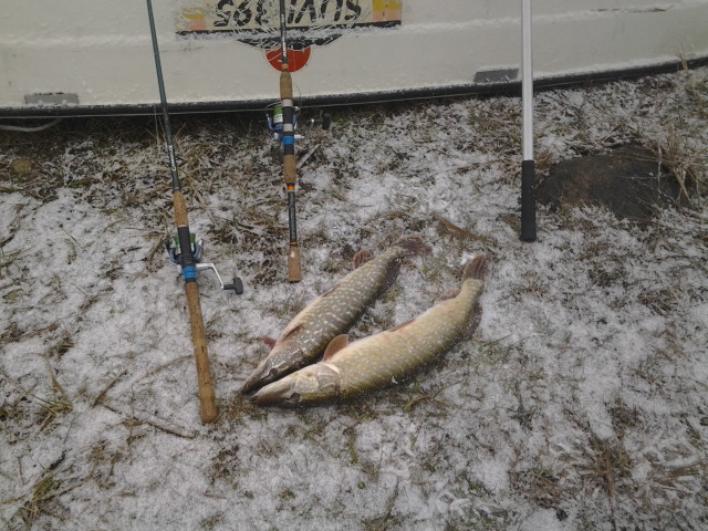 Щука застыла в ожидании становления льда и совсем не реагировала на приманки...У меня случился очень приличный сход, да Иван сразу выловил двушку....Ловили до 14-30, потом пошел снег и мы ушли домой.
