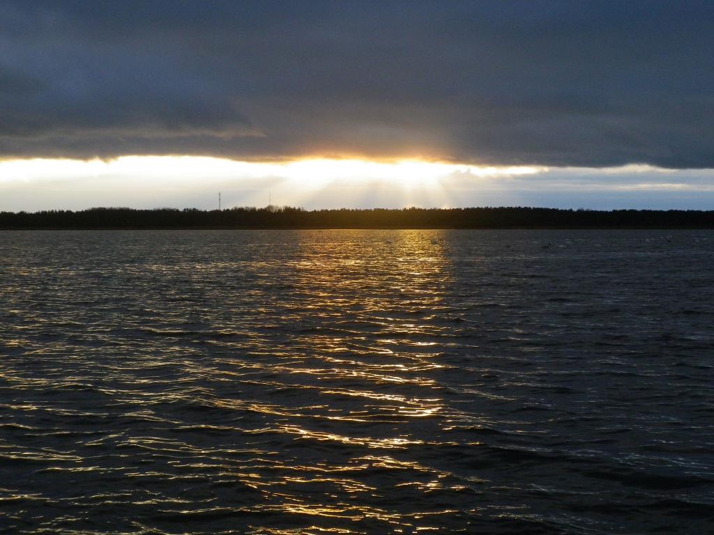 15 -го, в понедельник побывал на заливе. Воды много. Вышел с площадки Таебла. ветер штормовой, холодно, вода-мутняк-что еще нужно рыбаку для полного счастья? Выскочил, по дурости, на средину - понесло с 5-кг якорем. Даже не пробовал выгрести против ветра. По рыбе грустно, даже очень.....