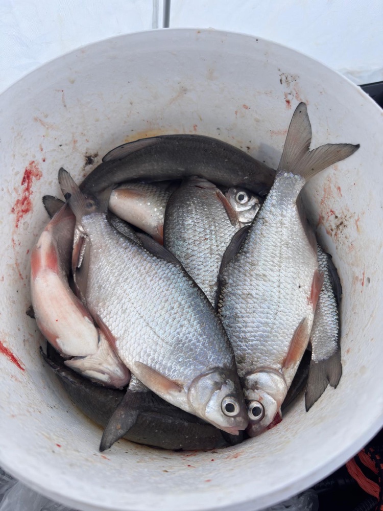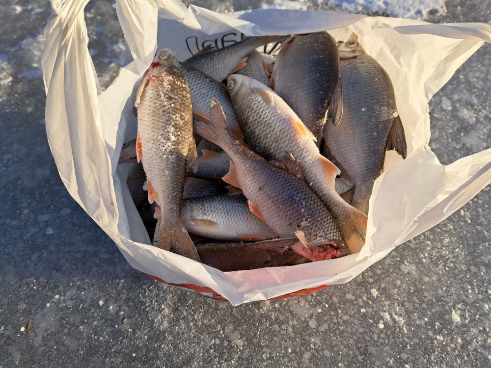 И снова Аргонафты. Здравствуйте. Удалось всё таки сегодня посетить р. Пярну. Начали рыбалку ( заправлены удочки) в 8,56. Как правило закормились, и давай ждать. Почти сразу густера. Но не за ней ехали. Обратно в лунку. И тишина. Течки нет. Ни мормышинг, ни донки. Просто тихо. За час рыбалки три рыбки. Две густи одна плотвичка. Народ что был рядом ретировался в дали дальние.И вот сразу после 10.00 пошла правильная течка. Но очень слабая. Но этого было достаточно что бы включилась рыбка. Клевать стало на всё. Но очень было комфортно ловить на мормышку. И рыбка покрупнее на неё шла. Много приходилось правда фильтровать. В итоге к 13.00 у меня 5 кг плотвы. У тёзки 6,5. На этом и закончили. И по светлу домой вернулись.