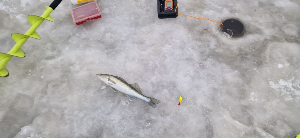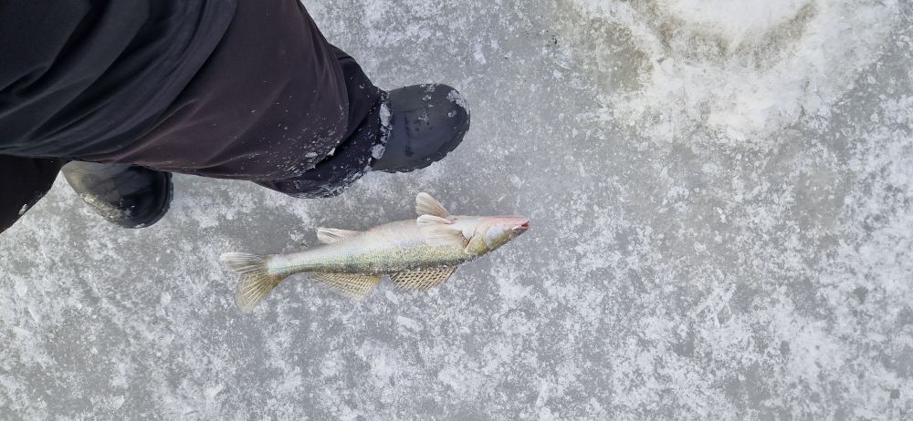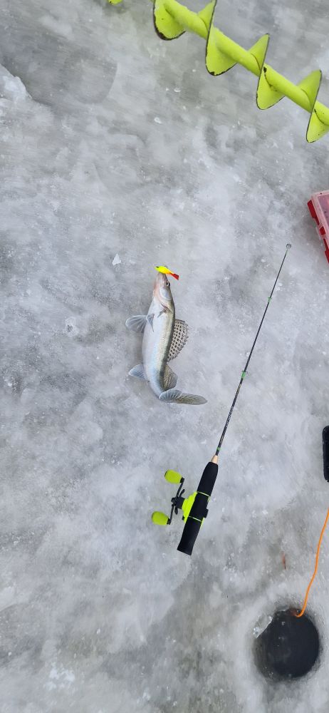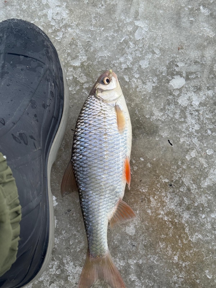 В 12 пришлось знакомому на ламельке помочь выехать с ледяной ловушки и сам тоже переехал к бочке. Народу хватало и рыб поклевывал, у меня шушара мелкая, а мой сенсей заборол 3 мерных, думаю один на 2 кг потянул.