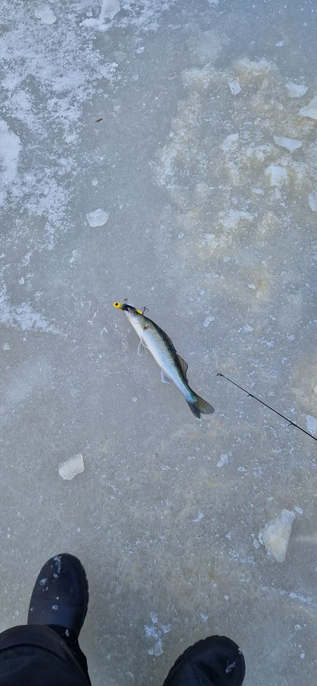 В 12 пришлось знакомому на ламельке помочь выехать с ледяной ловушки и сам тоже переехал к бочке. Народу хватало и рыб поклевывал, у меня шушара мелкая, а мой сенсей заборол 3 мерных, думаю один на 2 кг потянул.