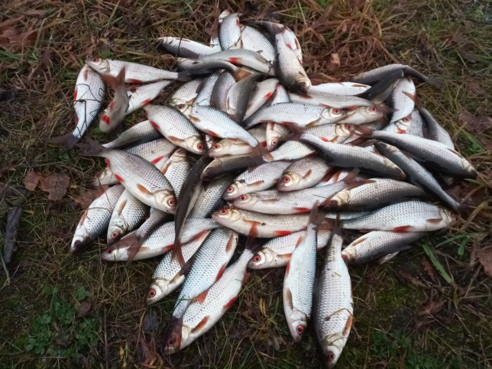 Всё утро щурята хулиганили, поклёвок ни счесть, то тянешь, плотвичка отпустит, то поводок откусят, то вхлам снать запутет, а раз думал подцепил карягу, очень неправильно шла, всплывает на поверхность, плотвичка, в неё вцепился шнурок, того в свою очередь схватил щукарь, враз три рыбы на один крючёк, чем у них там схватка кончилось не знаю, не одна до берега не дошла. То утку за пятку схватят, те ругаются кричат. А линь, да что линь, видел пару раз как он ходил, в окурат в том самом месте где в прошлый раз сходы сходы шли, пробовал и там ловить, но отозвалась тока плотвичка, а линь не повёлся на мою снасть. Как бы там не было, последняя рыбалка выдалась довольно весёлой. Всем удачи и не хворать