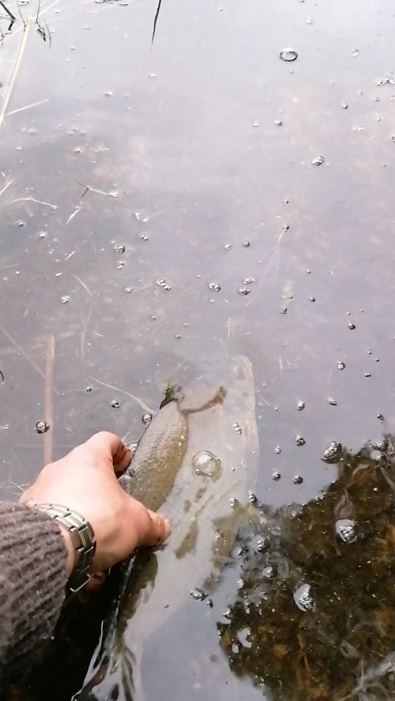 Был на одном из дальних любимых болот в прошлый четверг, видно что народ там тусил и следы присутствия рыбы были замечены мною, но там где я ожидал рыбу она меня не порадовала даже шнурками, то ли кто раскусил это место, то ли ещё какие причины, но я даже тычка не почувствовал. Ранее там брал штук 5 в среднем по полтора, редко 2, 2 с половиной и столько же до килошной отпускал.
